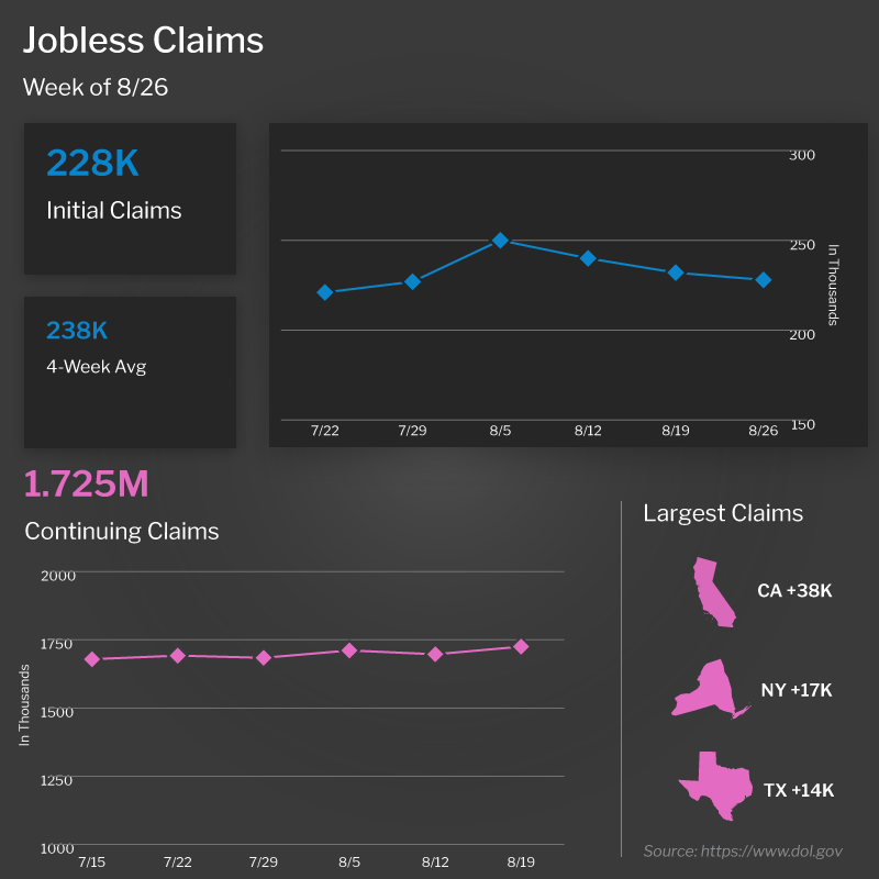 Bottom Line: While Initial Jobless Claims may suggest a robust labor market, it's important to consider the context. The measured week included the Labor Day holiday, which may have affected filing times and influenced the data. Initial Jobless Claims are typically the last indicators to reflect a labor market slowdown. Initial signs are usually observed through decreases in job postings, hirings, and reduced working hours. Recent reports have indicated these initial trends, and it will be crucial to monitor for a sustained increase in Initial Jobless Claims, especially as the Fed considers further rate hikes this fall.